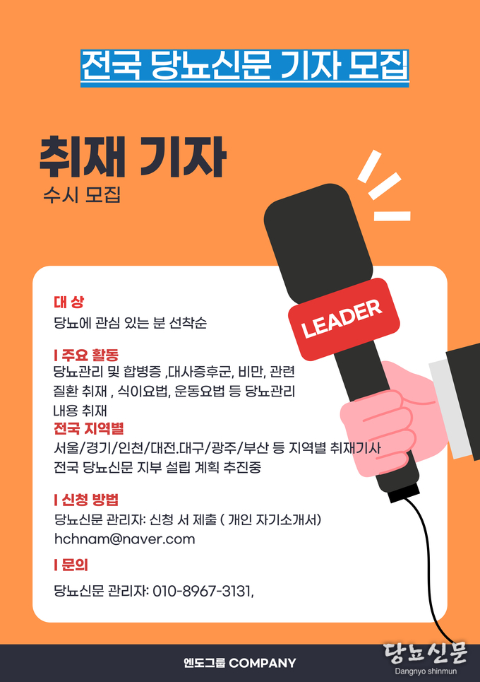 서촌 당뇨학교 박미산 시인이 운영하는 백석, 흰당나귀에서 가을을 맞이하여 나와 내가족의 건강한 삶을 위한 건강 프로그램인 서촌 당뇨학교를 당뇨병의 명의 유형준 박사의 초청강연을 준비하였다. 장소가 한정되어 선착순으로 진행할 것이라 하였다. 일시:2025년10월24일 금요일오후 6시 장소: 광화문서촌 백석, 흰당나귀 참가비: 2만원 선착순 25명 석식제공, 당뇨관련 엔도저널 제공, 음료 입금처: 하나은행:391-910176-04307 박명옥 주 소: 서울 종로구 필운대로 29, 2층 백석, 흰 당나귀 전화번호:02-738-0701 주최: 백석흰당나귀, 당뇨신문, 엔도그룹(엔도저널) * 오후 6시~6시30분–--무료혈당검사 진행