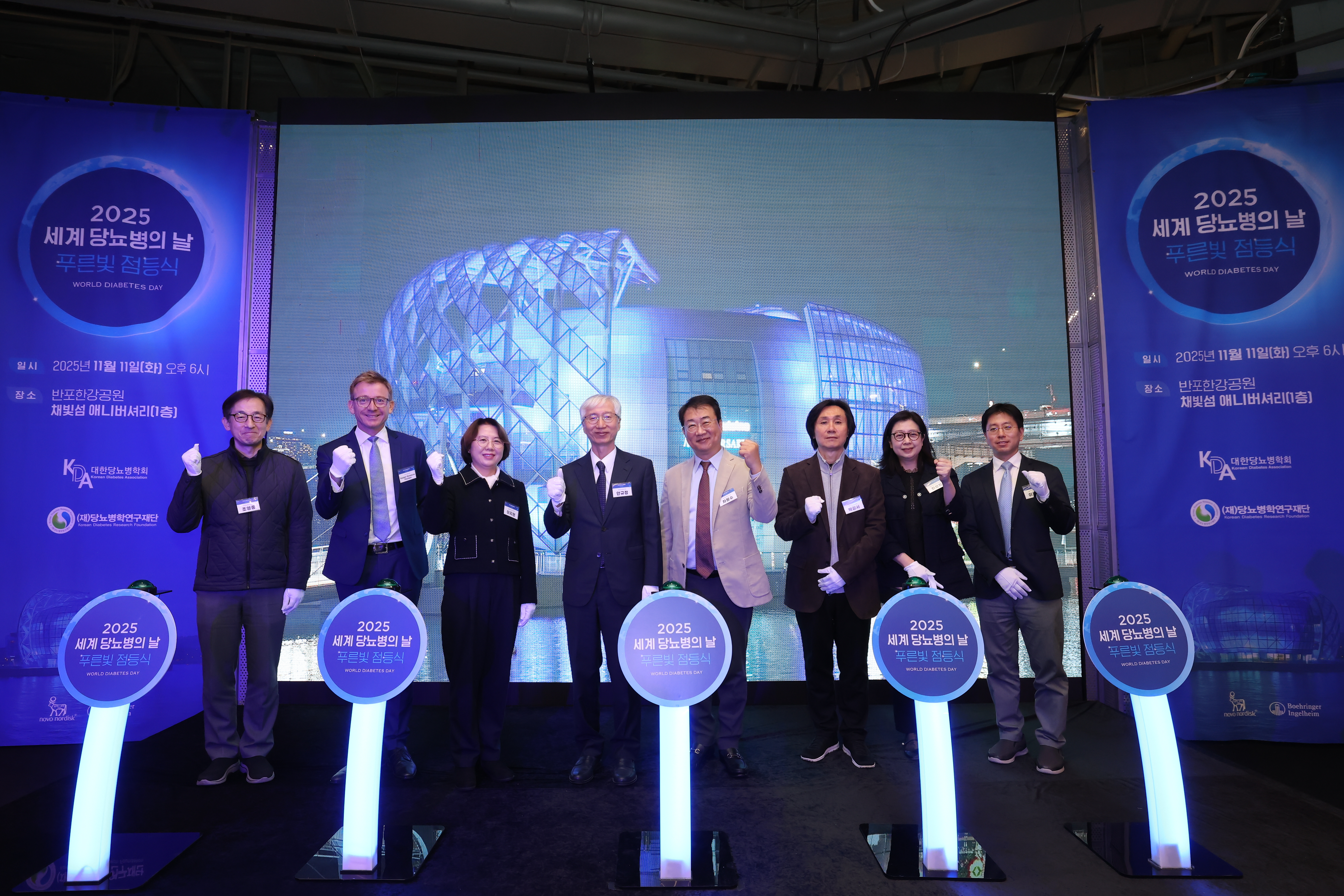 [2025년 11월 17일] 대한당뇨병학회(이사장 차봉수, 회장 안규정)는 세계당뇨병의 날(11월 14일) 을 기념해 지난 11월 11일 서울 반포한강공원 채빛섬에서 '2025 세계당뇨병의 날 기념행사 및 푸른빛 점등식'을 성황리에 개최했다. 이번 세계당뇨병의 날 기념행사 및 푸른빛 점등식은 (재)당뇨병학연구재단과 공동주최하였으며, 노보 노디스크제약(주)과 한국베링거인겔하임의 후원으로 진행되었다.
